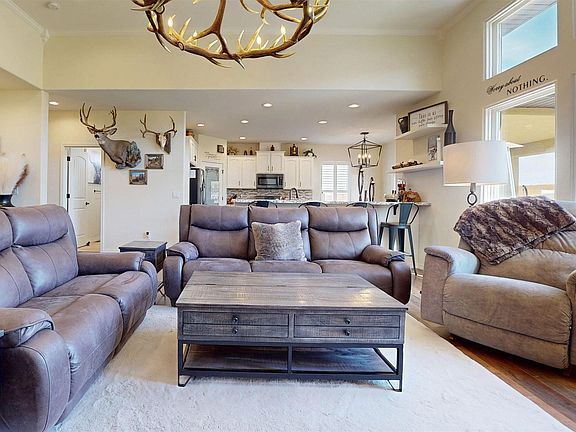 Open floor plan featuring high ceilings, a cozy fireplace & neutral colors throughout giving that farmhouse/country vibe! There are 3 beds, 2 baths with an office that could easily be turned into a 4th bedroom! Sitting on a half-acre lot in town this home is located in a highly desirable neighborhood & close to several acres of public-use land. There is plenty of room for RV parking. The garage has 3 bays that has 2 oversized, 10' garage doors with extra high ceilings.