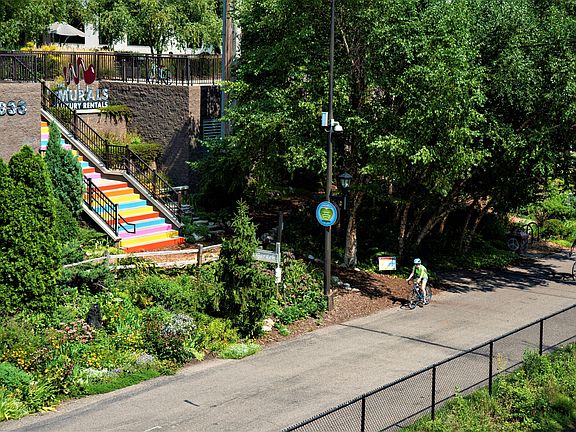 The Murals of LynLake is a boutique-sized community overlooking the Midtown Greenway Trail, featuring high-quality studio homes, one and two bedroom apartments, and featuring the largest square footage in Uptown. Studios up to 630 square feet, 1-bedrooms up to 881 square feet and 2-bedrooms up to 1,400 square feet! The Murals' location along the Midtown Greenway Trail offers an unparalleled car-free connection for bikes and pedestrians, bringing the Minneapolis Chain of Lakes and all of Uptowns best shops and restaurants right to your door. Apartment homes at The Murals include oversized windows, large balconies, upgraded flooring and inspiring urban views.
