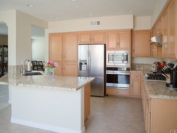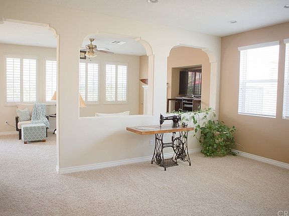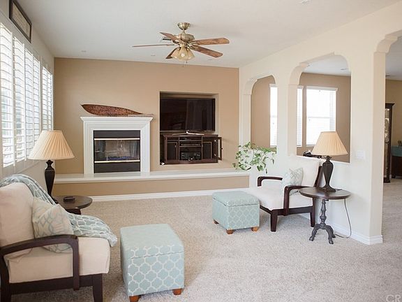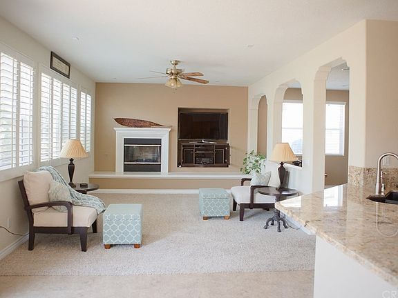 St. Clare at Plum Canyon Community. Built in 2004, this home features an open design spanning over 2,545 sq. ft., 4 bedrooms, and 2.75 baths. Master bedroom suite offers a private retreat, master bath with large soaking tub, dual vanities, and a large walk-in closet. Kitchen features include ample cabinet and counter space, breakfast bar, and stainless steel appliances.Separate Living and Family rooms provide a perfect layout for entertaining. Amenities include gas fireplace, entertainment center, and pre-wired for surround sound. Upgrades include custom shutters, granite counters, and pre-wired alarm system. No Mello-Roos and low HOA.