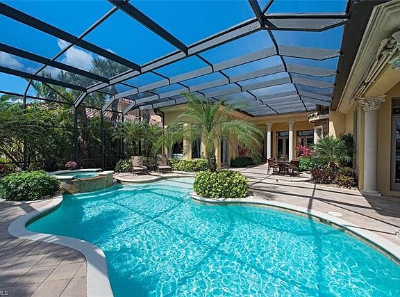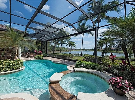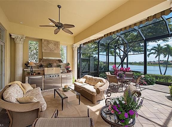 V.2648 - A Designer decorated home situated overlooking beautiful long lake with stunning views & gorgeous landscaping. Once you have stepped into the courtyard embellished with flowering bougainvillea & a trickling fountain as it leads to custom iron doors, you immediately sense the beauty of this home. The living room and family room both open up to the expansive pool with spa, sun shelf & rock waterfall. Two 10 ft. electrical canopies offer endless sun protection to the outdoor kitchen and dining area while the pool deck features a newly screened lanai which includes a 40 ft. panoramic section to take advantage of the lake views. The expansive kitchen creates the perfect gathering space for family in friends with an island, breakfast bar, and family style kitchen table with built in seating. Features also include a walk-in pantry, wine fridge & under counter refrigerator perfect for those extra drinks! Enjoy the three en suite bedrooms along with a 'kids bunk room' with adjacent 'great room' that doubles as a retreat off of the oversized study. Discover endless appointments and storage space! Access to an immediate golf membership can be negotiated.