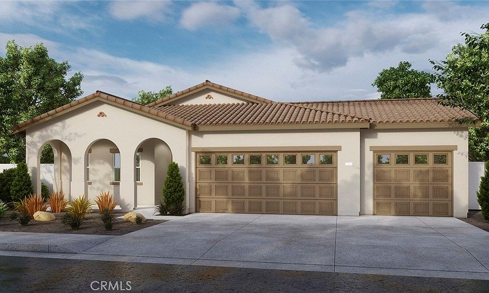 NEW CONSTRUCTION! This lovely 1898 square foot Spanish façade SINGLE-STORY home on a CORNER LOT offers a WIDE entryway to the open concept Great room and Dining area with vaulted ceilings. The ISLAND kitchen has a breakfast bar, QUARTZ counter tops, stainless steel appliances, and pantry closet. All four bedrooms are generously sized, the ensuite has a large walk-in closet, and the laundry room is conveniently located just off the main hallway. There is White shaker-style cabinetry and DESIGNER flooring throughout, and this home includes a direct-access 3-car garage pre-plumbed for an electric car! This truly modern home has all the SmartHome features you would expect and, is FULLY LANDSCAPED AND IRRIGATED in the front yard. Homeowners will also enjoy easy access to nearby shopping, dining, and entertainment. We anticipate an October 2023 move-in and, we can't wait to WELCOME you HOME!
