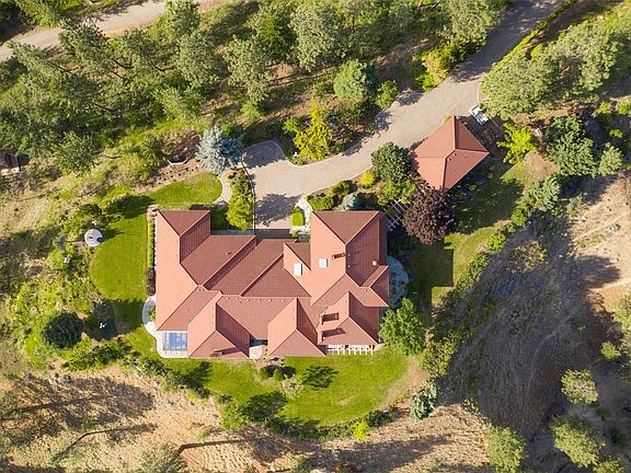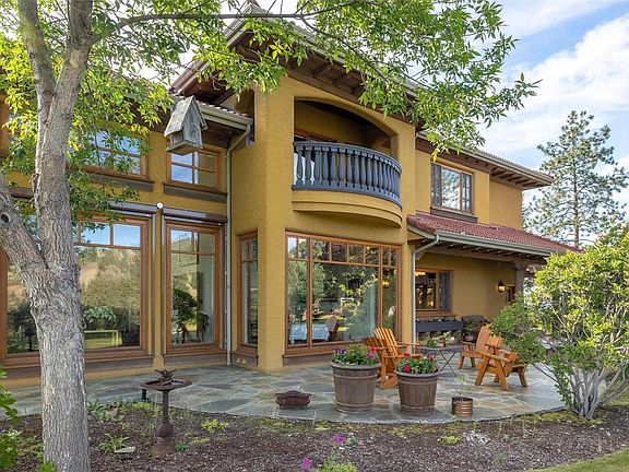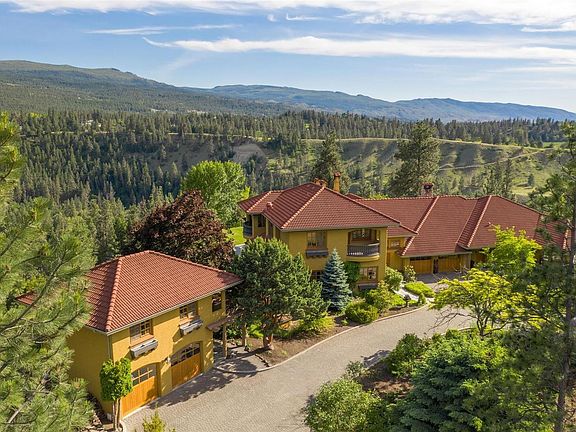 One of a kind gated hilltop estate on 17.9 acres of prime agricultural land. Showcases stunning lake, mountain and Canyon views! 7100sqft multi-generational home w/2 complete residences. High caliber European construction; tile & hardwood floors, high ceilings w/ exposed beams, Sub Zero & Wolf appliances. Great room provides expansive views w/ massive windows, wood burning fireplace surrounded in stone. Large picture windows & parquet floors w/loads of space give the sitting room an open & airy; while the f/P adds warmth. Open & expansive kitchen w/ feature brick wall & plenty of room to add an oversized island. Luxurious master w/full ensuite. 4 bdrm/6 bths, full basement & dbl garage. Detached garage w/guest studio above & 1/2 basement. 12.5ac of irrigation on the high quality farmland, formerly garden nursery (Elysium Gardens) & perfect for horses, orchard, vineyard, & more!! Covered parking for 4 & RV parking. A truly exceptional estate offering an array of options!