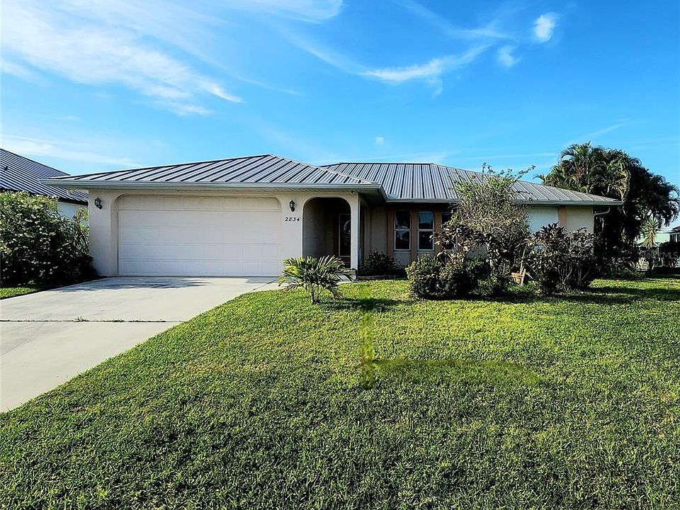 NEW METAL ROOF - SAILBOAT WATERWAY - Welcome to Punta Gorda Isles, where waterfront living meets luxury and comfort. Nestled in this coveted sailboat community, this 3-bedroom, 2-bathroom pool home with a 2-car garage and new roof is a true gem. Upon entering, you'll immediately notice the thoughtful layout, featuring split bedrooms for added privacy and separate living room areas plus a centralized kitchen that serves as the heart of the home. The kitchen boasts a stunning 10-foot island with storage on both sides, perfect for culinary enthusiasts and entertaining guests and beautiful cabinetry. The front living room along with the dining room boasts views overlooking the lanai and pool area. Providing seamless transition between indoor and outdoor living spaces, step out the sliding glass pocket doors from the dining area to the expansive lanai area, adorned with beautiful pavers, surrounding the inviting pool. This outdoor oasis is the ideal setting for relaxing evenings or hosting gatherings with friends and family. Situated on a waterfront lot with sailboat access waterways to open waters, this home offers breathtaking views and endless opportunities for boating and water recreation. Hurricane shutters provide peace of mind during storm season, while the new metal roof ensures durability and longevity. Inside, you'll find no carpet throughout the home, adding to its appeal and ease of maintenance. The second bedroom and bathroom each conveniently have direct access to the pool area, enhancing the indoor-outdoor flow. The third bedroom provides for ample space for family or guests. Additionally there is a set of sliding glass pocket doors in the main bedroom suite that opens up to the lanai. Plus, ceiling-height laundry room cabinets for ample storage, roll-down hurricane shutters on the lanai, and a cement dock with water and electric. The refrigerator, dishwasher, washer and dryer are brand new, adding to the home's modern convenience. The new metal roof provides years of security and protection. With its prime location, stunning waterfront views, and luxurious amenities, this Punta Gorda Isles home offers the epitome of Florida living. All the major things accounted for and done, now all it needs is your special touches to make it your own. Don't miss your chance to experience waterfront paradise, schedule a viewing today and make this your own new coastal retreat.