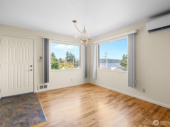 Single level home in a quiet waterfront community with west-facing views of the bay and Lummi Island. The open layout connects the kitchen, dining, and living areas, creating a bright and comfortable space. Large windows fill the home with natural light and frame the view, which can also be enjoyed from the spacious primary suite. Wake up to the water each morning, cozy up by the wood-burning fireplace, and catch stunning sunsets in the evening. Mini splits and a backup generator are already in place. A small shop space around back offers extra room for projects or storage. Just minutes from the Lummi Island Ferry and a short drive to Bellingham.