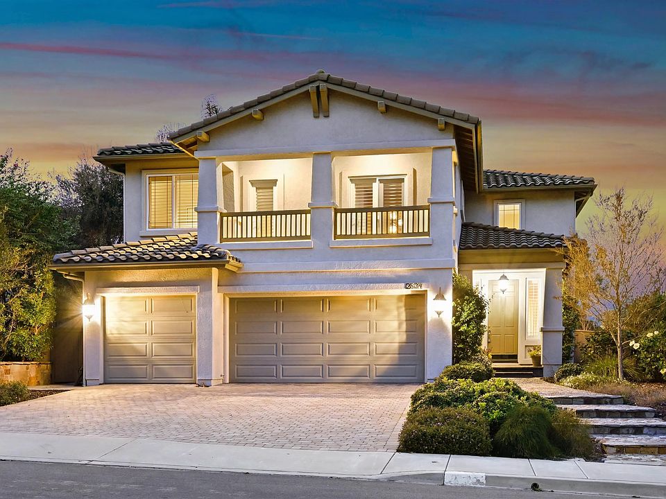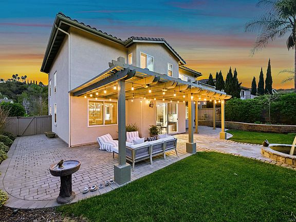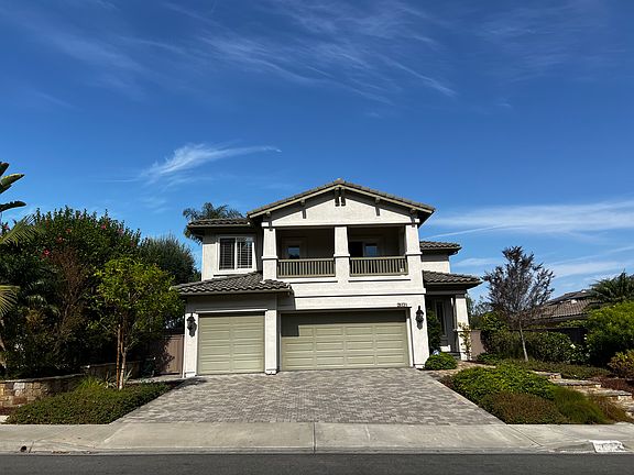 Coastal living at its finest awaits in this stunning five-bedroom, three-bath home in the desirable Rancho Carrillo community. A bright, open floor plan with soaring two story ceilings creates a welcoming first impression. The chef’s kitchen is beautifully appointed with quartz countertops and stainless steel appliances, with seamless flow into the cozy family room accented by stunning built-ins and direct access to the serene backyard. A convenient bedroom and full bath on the main level offer flexibility for guests or multigenerational living. The expansive primary suite opens to a private balcony and features an oversized walk-in closet and a spa-inspired bathroom retreat. Upstairs, a 5th bedroom can also be utilized as a large bonus room providing the perfect space for a home office, media room, or entertainment area. An attached 3 car garage provides room for all your toys and keeps you organized. The inviting backyard offers tranquil relaxation as you sip your favorite beverage soaking in the sounds of the soothing fountain or dine al fresco under the covered patio while loved ones frolic in the plentiful grassy areas. Splendid views and breathtaking sunsets can be enjoyed on any of the multiple decks or in the backyard. Less than a mile away enjoy Alga North Park offering a skateboard area, dog park and olympic size pool. Ideally located near great schools, shopping, dining, entertainment venues and only 6 miles from the ocean! This showcase home awaits your arrival!