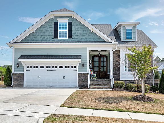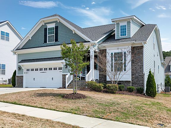 GREAT FLOOR PLAN. LIVES LIKE A RANCH ON THE FIRST LEVEL! Charming home, meticulously cared for that is perfect for entertaining! Transitional open AND airy floor plan. This home has five bedrooms, yes, you heard me. Three on the first floor which includes the Master. Front bedroom being used as an office and has hardwoods. GOURMET Kitchen with VENT Hood & GAS COOKTOP. THE ISLAND WAS EXTENDED THREE times THE SIZE and it is fun for parties or several people cooking, making holiday treats and all other fine things if you are a FOODIE. REAL WOOD slide out gliders in the pantry WITH two special spice racks, and in the island cabinets and two cabinets by the gas stove.. STAINLESS STEEL FRIDGE CONVEYS. DINING ROOM has a COFFERED CEILING and additional trimwork. LOTS OF ADDITIONAL CABINET STORAGE IN THE LAUNDRY ROOM . WASHER AND DRYER CONVEY. The PRIMARY Bedroom has TREY CEILING. PRIMARY BATH has extended tiled and PEBBLE SPA like flooring shower with knee wall. HUGE BONUS ROOM UP with room for all types of activities. The other two are generous sized bedrooms where the one is huge!! GREAT closet space!! Garage has lots of additional storage that I can leave if you would like. The SCREEN PORCH IS A DELIGHT! WITH CATHEDRAL CEILING and a pretty ceiling fan and LARGE EXTENDED DECK. GAS GRILL CONVEYS. FENCED and gated yard with trees along the back perimeter. You just might want to call this one home. Apex - 'The Peak of Good Living!