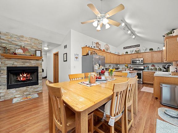 Lovely 3 bedroom ranch home in New Lenox. Laminate wood thru out the home. Large eat in kitchen with fireplace, separate dining room. The beautiful kitchen opens up to a fenced backyard with above ground pool and a one year old shed for extra storage. Washer dryer hook up both upstairs or downstairs you decide where you want it (maybe both places!) Partially finished basement with an xtra bathroom and a place for a salon. Washer dryer is currently hooked up in basement.