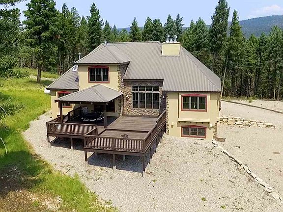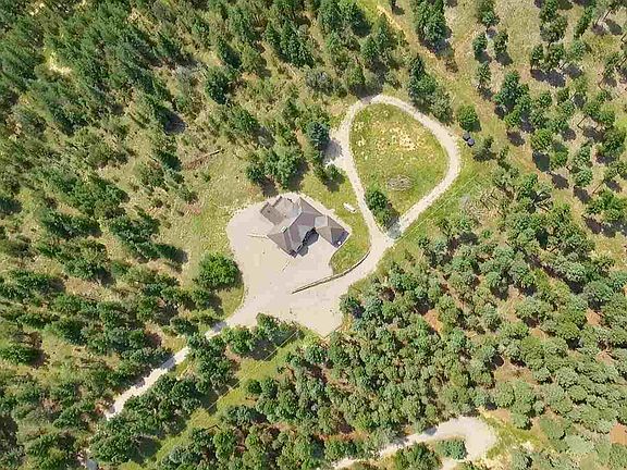 Fifty beautiful mountain acres with exquisite home almost 1 mile down private drive offers extraordinary details; travertine barrel ceiling, hand plastered walls, marble inlay floor, stacked stone from property. Master suite has handsome kiva fireplace, dramatic spa bath. Finished basement can be separate apartment- studio. Huge decks with views. Land touches Ntl Forest, gated, mostly fenced, gentle slopes, ponderosa pines, perfect for horses. Caretaker house or rental near entry. Furnishings negotiable.