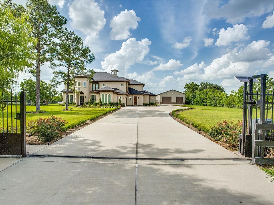 Luxurious Custom Estate for SALE! Gated, Private, and One-of-a-Kind. Welcome to this stunning custom-built estate. This exceptional home offers elegance, space, and versatility. Designed for both daily living and entertaining, it features an extended outdoor area perfect for gatherings and three balconies overlooking the scenic acreage. Inside are six spacious bedrooms and six full baths, including two main-floor primary suites. Enjoy two gourmet kitchens with high-end appliances and stylish finishes—ideal for culinary enthusiasts. Upstairs boasts a large game room with custom built-ins, a media room, and four additional bedrooms. A soaring two-story living room with a grand staircase makes an unforgettable first impression. This exceptional Katy home offers freedom, luxury, and space! This home is in an un-restricted area where livestock are welcome if that interests you! Come see this beautiful one-of-a-kind home in Katy, Texas. For Sale or Lease.