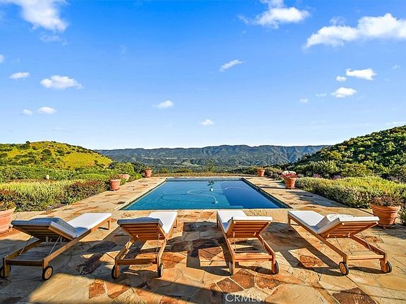 A truly rare opportunity inside the prestigious, gated, and historic Hermitage Ranch. The moment you enter this exceptional 47-acre estate, you feel the serenity and seclusion that make this property so special. This is a true retreat, a resort-like setting with two large homes, both perfectly positioned to take in the sweeping mountain and valley views that make Ojai such a magical place. The main house (2835 Hermitage) is 4466sqft 5bd/5ba and the guest house (2833 Hermitage) is 2396sft 3bd 3ba. The possibilities here are endless. There is an almost two-acre pad that could accommodate a professional-level equestrian facility, tennis or pickleball courts, or whatever vision you have for creating your dream compound. The property, which falls under the Williamson Act, is a perfect wedding venue and since it is not within the city limits of Ojai is governed by Ventura County rules as to other short term rental uses. Buyers should verify all potential uses directly with the County. A seasonal stream winds through the land, adding to the charm and peacefulness of the setting. Perched at the top of the private, 500-acre Hermitage Ranch, the main villa feels timeless and romantic, beautifully upgraded, thoughtfully maintained, and truly in immaculate condition. The photos are stunning, but seeing this property in person is absolutely breathtaking. Outdoor living is exceptional here, with expansive covered patios, an inviting outdoor kitchen, and a gorgeous pool area designed for entertaining or relaxing. There is also a detached workout studio, perfect for yoga, fitness, or quiet retreat time. You’re surrounded by lush avocado and citrus orchards, and the property includes 10 acres of avocado trees and 1.5 acres of Golden Nuggets. Residents enjoy direct access to extensive hiking trails leading into the Los Padres National Forest, truly a dream for nature lovers. A charming guest house, crafted with the same attention to detail as the main residence, adds even more flexibility and charm. Bordering State Park land, it’s common to see deer wandering through the orchards, adding to the peaceful, natural beauty of the setting. This is truly a piece of paradise tucked in the heart of the Ojai Valley. Ojai was just named one of the 11 Most Idyllic Small Towns in California by World Atlas and this property embodies exactly why. Don’t miss this one-of-a-kind opportunity to own an extraordinary estate that could offer significant tax advantages (check with CPA).
