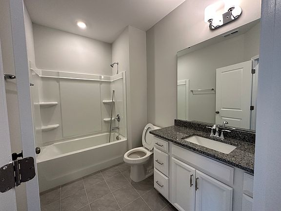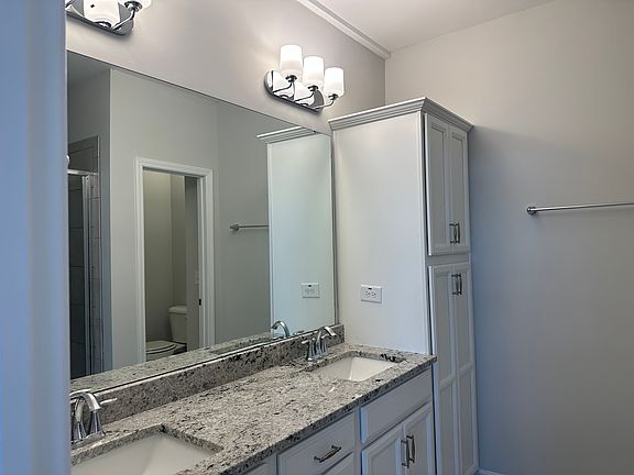 The upper (third) level hosts the owner's suite, complete with a walk-in closet and a luxurious en-suite bath with dual granite vanities, a large tiled shower with built-in seat, and a private water closet. Two additional bedrooms and a full bath provide ample space for family or guests.