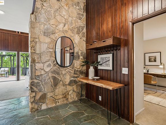 Piedmont Pines Mid Century Retreat. Nestled among the trees, this serene mid-century home offers the feeling of a Tahoe getaway just minutes from Montclair Village. The main house features 4+ bedrooms, 2 bathrooms, two spacious living rooms, and flexible spaces ideal for a media room, office, or gym. An additional 1-bedroom, 1-bath suite with a private entrance is perfect for guests or an au pair. Designed for effortless indoor/outdoor living, the home opens to expansive private decks leading to a tranquil pond and level play area, hot tub and surrounded by gardens with a Japanese-inspired design. Enjoy glimpses of the Bay, a fully remodeled kitchen, and an open floor plan with warm wood finishes, a wet bar, and sliding glass doors framing lush greenery. Conveniently located near Hwy 13 and scenic hiking and biking trails, this one-of-a-kind property offers privacy, beauty, and a true connection to nature—just moments from city life. Close to top rated schools, East Bay Parks and much more!