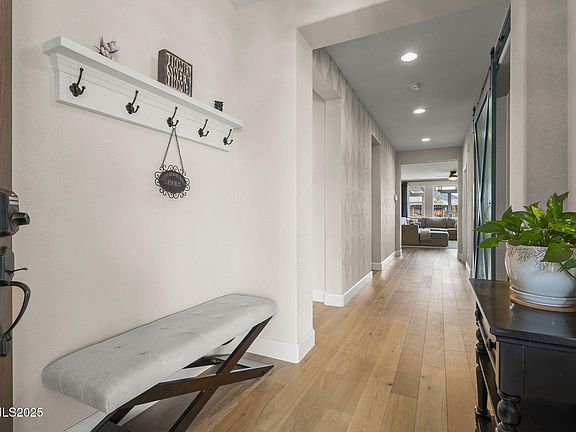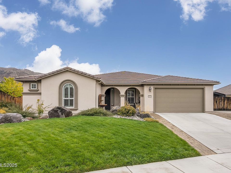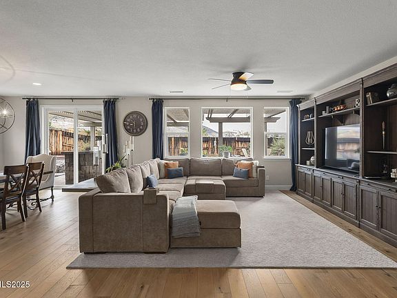 Welcome to this beautifully maintained single-story home in the highly sought-after Golden Hills / Damonte Ranch neighborhood — where mountain views and modern upgrades come together in perfect harmony. This 3-bedroom, 2½-bath home showcases pride of ownership throughout. The light-filled floor plan features engineered hardwood flooring, upgraded lighting, and a stylish kitchen complete with upgraded cabinetry and countertops. Step outside to a backyard designed for relaxation and entertaining, boasting over 100,000 in professional landscaping enhancements. Enjoy low-maintenance turf, Trex decking, a custom pergola, and beautifully crafted concrete work. An additional driveway and side carport offer extra parking and convenience. This home has been exceptionally well cared for, with regular HVAC and water heater servicing for peace of mind. Take in the stunning Mount Rose views and experience the best of Reno living in this move-in-ready retreat.