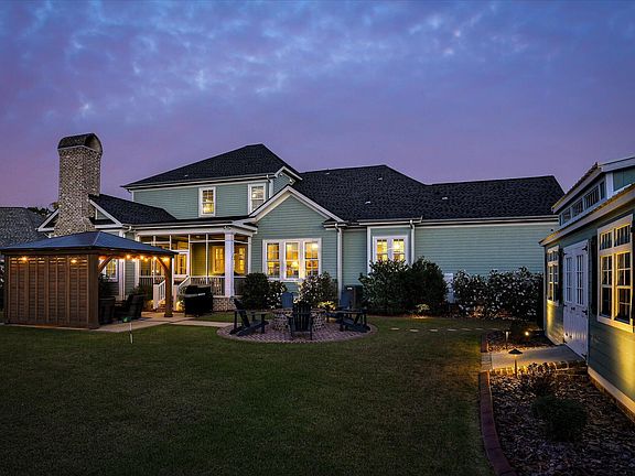 Outdoor living is equally impressive. The property features lush gardens filled with native and exotic plantings, a new metal-roofed gazebo with lighting, a built-in fire pit, and an expansive covered porch perfect for morning coffee or evening gatherings. A 14x28 boathouse/workshop with 40-amp wiring, remote garage door, and electricity adds tremendous versatility. Enjoy access to private community walking trails with riverfront access, ideal for kayaking, cycling, or a peaceful stroll by the water.