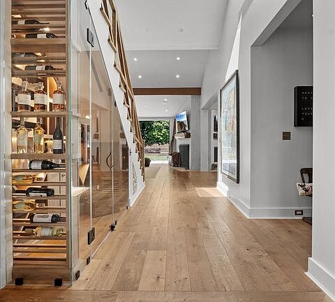 Sophisticated Hollywood Hills Sanctuary Under $5 Million. This meticulously crafted 5-bedroom, 5-bathroom residence occupies a prime position on a tranquil cul-de-sac in one of Hollywood Hills' most exclusive enclaves. The home seamlessly blends rustic warmth with contemporary sophistication, creating an atmosphere that feels both refined and genuinely welcoming. Architectural details define every space: floor-to-ceiling windows flood the interiors with natural light, while four distinctive stone fireplaces anchor the living areas with organic texture and warmth. The thoughtful layout facilitates both quiet daily living and effortless entertaining, from intimate dinners to larger gatherings. Premium finishes elevate the experience throughout. Farrow & Ball custom paint creates depth and richness on every wall, while Forbes & Lomax switch plates add subtle luxury to the smallest details. The kitchen showcases top-tier appliances, including a custom beveled mirror-adorned Sub-Zero double-door refrigerator that serves as both function and art. The home features carefully curated antique and vintage touches throughout, including antique French limestone for the fireplace hearth, antique Tuscan farmhouse stone on the primary bedroom wall, hundred year-old reclaimed wood beams, vintage French oak flooring from the Lorraine region of France and authentic Tartan carpet from Scotland. The century-old solid reclaimed wood beams fit perfectly with the other historic and vintage elements of the home. The design philosophy balances comfort with elegance, imagine morning coffee on the porch swing, afternoon fires in cooler months, and evening cocktails at the formal indoor bar or on the expansive veranda. Each of the five bedrooms offers generous space and privacy, while the spa-inspired bathrooms provide daily retreat moments. Practical luxury extends to conveniences like direct garage access, while the home's position ensures both privacy and accessibility to the broader Los Angeles landscape. This is a residence where exceptional craftsmanship meets livable luxury, offered at a compelling price point in one of the city's most coveted celebrity neighborhoods. Buyers should independently verify all information through personal inspection and appropriate professionals.