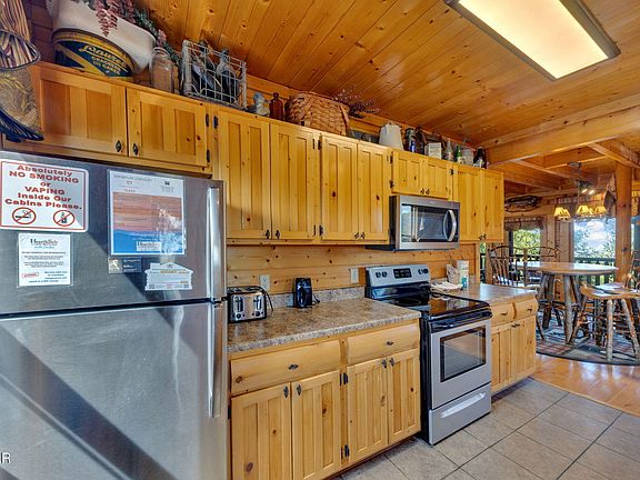 Step inside and you'll be greeted by soaring floor-to-ceiling windows, an open-concept living space with an electric fireplace, and a gourmet kitchen with a unique saddle-seat dining table. The main-level king suite features a private bath and hickory log furnishings. Upstairs, you'll find a massive Aspen log bed, Jacuzzi tub, walk-in shower, kid's sleeping loft, and a game table for chess, checkers, or cards. The lower level is built for entertainment—complete with a theater area featuring an 85'' flat screen TV, a recently resurfaced log pool table, foosball, an arcade system with 400+ games, a sleeper sofa, bunk beds, and a private bath with washer/dryer. Three expansive decks provide the ultimate Smoky Mountain experience—rocking chairs, a private hot tub, and endless views of the mountains and stars. Recent upgrades include three new HVAC systems, a new hot tub, a resurfaced pool table, refinished cabinets, and a full exterior restain and treatment (2021-2023). As part of The Preserve Resort, you'll also enjoy top-notch amenities: a seasonal pool with breathtaking mountain views, a fitness center, sauna, steam room, outdoor pavilion with fireplace, and even a charming wedding chapel. With a strong track record of 5-star guest reviews and many repeat visitors, Your Happy Place is more than a cabin—it's a Smoky Mountain getaway with all the bells and whistles you'd expect from a luxury retreat and one of the most reliable investments on the market today.