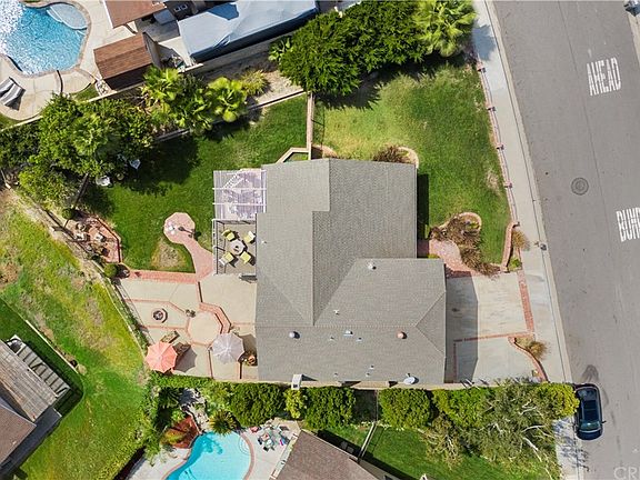 Gorgeous home situated on a huge, private, View lot with potential for RV parking. Double glass entry doors open into dramatic foyer with soaring ceiling and stone flooring. To the right is a step-down living room with plush cream carpeting & plantation shutters, and leads into the formal dining room. Leaded glass french doors open to the shady covered patio. Bright, open kitchen features granite counter tops. Garden window in kitchen & leaded glass bay window in the breakfast nook bring in loads of natural light. All this opens to the supersized family room with custom Limestone faced wood burning fireplace and walk-in bar with wine locker. Master & upstairs bath have been beautifully remodeled with Travertine & marble. Room to run & play in the huge, private backyard with patio areas & sprawling lawn area. Wrought iron gazebo included.
