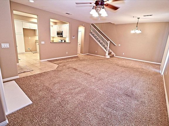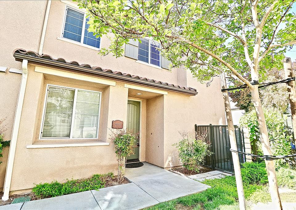Fabulous location within the highly desirable Mariposa community. This spacious and well maintained two level townhome has 1,710 sq ft of living space, 3 upstairs bedrooms and 2 ½ baths. The first level features high ceilings, neutral paint, living room with fireplace, ceiling fan and an entertainment nook. Nice sized kitchen with lots of storage space, white cabinets, granite countertops, Frigidaire stainless steel appliances, tile flooring, recessed lighting and breakfast area. Dining area opens to private patio yard. Downstairs ½ bath with pedestal sink, indoor laundry room and 2 car direct access garage. The upstairs master suite includes his and her sinks, an over-sized bathtub/shower combo and walk-in closet with built-in cabinet. Two additional carpeted bedrooms with ceiling fans, hall bathroom and a built-in desk area complete the upper level. Amenities include resort style swimming pool, Jacuzzi, clubhouse, BBQ's and playground with tot lot. Low HOA of only $150 per month and NO Mello-Roos. A wonderful place to call home!