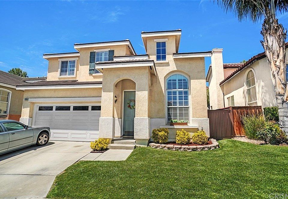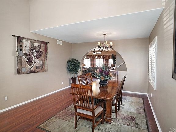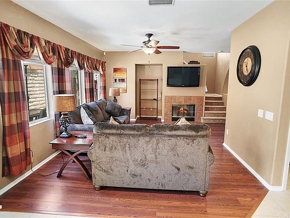 A beautiful, well maintained home in the highly desirable Acacia Tract with great curb appeal. Upon entry you'll discover the spacious living room/dining room with a dramatic vaulted ceiling, plantation shutters, custom window treatments, there is beautiful laminate wood look flooring downstairs with large tile flooring in the kitchen/bath areas. The home also features an open floor plan great for entertaining. The remodeled cook's kitchen has granite counters, upgraded appliances, recessed lighting, ample cupboard and counter space, a large sink and a center island. The kitchen opens up to very spacious family room with a cozy fireplace and ceiling fan, custom window treatments. There is a convenient guest bathroom downstairs and direct access to the 2 car garage. The slider leads to the backyard that features a nice sized patio and block walls. At the top of the stairs there is a large loft area that overlooks dramatic high windows that are above the dining room for great natural light. Convenient indoor laundry room as well. There are 3 bedrooms upstairs, the master bedroom has an adjoining master bath with a dual sink vanity, soaking tub and a separate shower plus a large walk in closet. The home also features in the loft area upstairs with an office niche. The home boasts lots of natural light, tasteful upgrades & is part of a wonderful community. This great home is walking distance to the park and community pool/spa. Close to shopping!