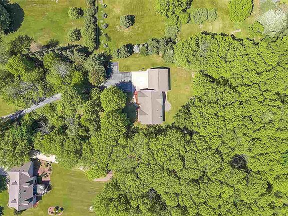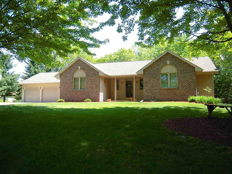 Picturesque best describes the setting here. Home sits back off the road in a wooded lot, but the home sits in a nice open area on top of a hill. Enjoy the sun and breeze on a summer day in the private yard. Master bedroom has 2 closets and private bath. Living room with vaulted ceiling and brick front wood burning fireplace. Large Dining area with oak flooring and sliders to a paved patio area. Basement is partially finished with daylight windows and stubbed for shower/toilet. Garage is a 3 stall with floor drains, and comes with extra paved parking area. Howard/Suamico Schools District.