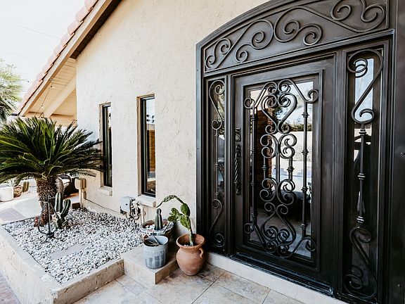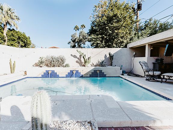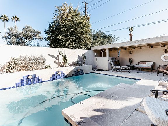 Enjoy a stylish experience at this centrally-located home -- Less than 5 minutes from Old Town Scottsdale! This furnished short-term/medium term rental home is in a peaceful and quiet neighborhood, close to many amenities and attractions . Large, walled in lot with private pool, furnished covered patios, and desert landscaping. Large kitchen and wet bar with many features. Finishes including tile floor, custom cabinetry, vaulted ceilings, quartzite countertops, lime plaster walls, and stainless steel appliances. Smart lighting and high speed internet for the tech savvy. Pool heating via electric heat pump.
