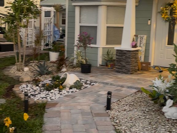 You have pavers completely leading to the back door to create nice pathways wherever you decide to walk.