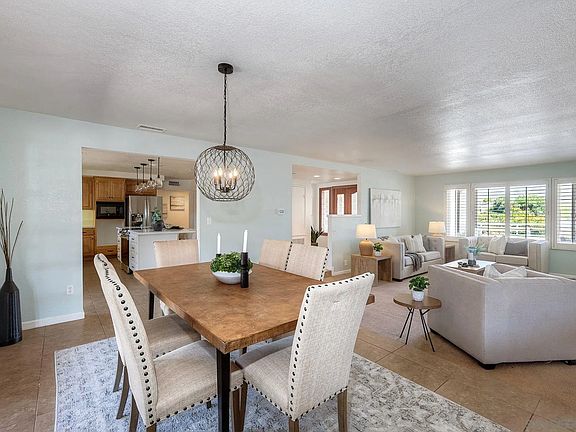 Escape to tranquility! This custom-designed home offers 4 spacious bedrooms (including one conveniently located on the main level), and 2.5 baths. The open-concept kitchen showcases upgraded cabinetry, quartz countertops, stainless steel appliances, and tile flooring. It seamlessly flows into the dining and living areas—perfect for both entertaining and everyday living. The living and family rooms include stone fireplaces and an abundance of natural light. There are dual pane windows throughout, two central air conditioners and 28 owned solar panels. Embrace the mountain views from your private pool. Multiple fruit trees on property and animal designation J. A perfect haven on a sprawling 1-acre lot.