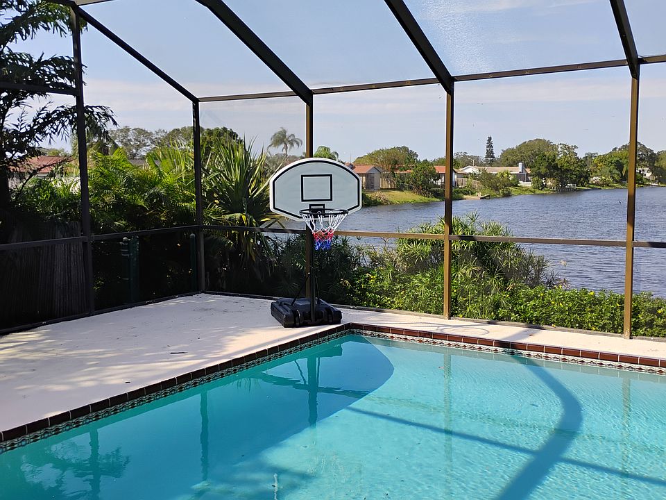 Experience the special beauty and calmness of Florida living in this beautiful, 4 bedroom, 3 full bath home with comfortable sleeping for up to 8 people. The kitchen is fully equipped with cooking accessories, pots, pans, dishes, glasses, cups, silverware, coffee maker, toaster, a George Foreman grill, and a large built-in microwave. There are 3 large flat screen TVs (ROKU included), a washer and dryer, high-speed Wi-Fi internet, DVD players, Lawn care and Pool care are included.