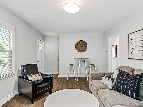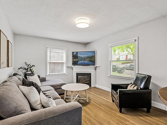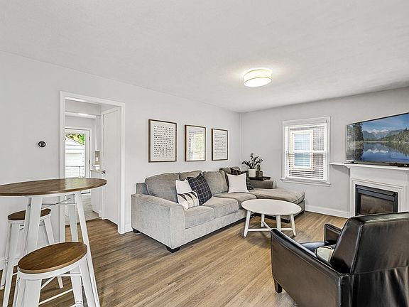 This updated one and a half story home features a fully fenced backyard with a paver patio, perfect for outdoor entertaining. It has an oversized one-car garage and new siding, roof, and exterior doors. The kitchen is beautifully updated with tiled floors, stainless steel appliances, and quartz countertops. There are two nice-sized bedrooms on the main level, complemented by a full bath, and a spacious primary bedroom on the upper level with ample closet space. Refinished hardwood floors flow throughout the main living areas, including the living room, which boasts a cozy gas-burning fireplace. The finished basement offers a spacious bedroom, a custom-built bar in the family room, and a convenient 3/4 bath. Additional features include a nice storage area and a newer washer and dryer. This move-in-ready home combines style and functionality in a great layout. Recent updates include: 2025- New roof, siding and exterior doors 2021- Full kitchen remodel appliances including washer and dryer are from 2018. 2020- Main floor bathroom remodel. Bar area in the family room downstairs can be included in the sale at the buyer's request.