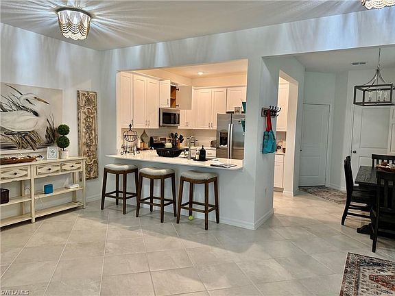 Spacious and tastefully furnished Town House in Orange Blossom Ranch, available now, for annual rental. This townhouse house features an 1879 square foot floor plan with three bedrooms and two and a half bathrooms on the second floor. The first floor has an open living and dining area. The kitchen is equipped with stainless steel appliances and a stone countertop. The property also includes a screened lanai, a single-car garage, and a paved driveway. The community offers a range of amenities, including tennis courts, a fitness center, basketball and volleyball courts, and two swimming pools. The location is ideal for shopping and proximity to schools, such as Palmetto Ridge High School, Corkscrew Middle School, and elementary schools.