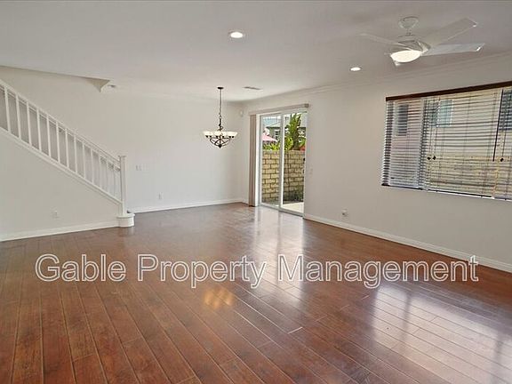 Welcome home to 28371 Mirabelle Lanea stunning, turnkey townhome nestled in the coveted Mariposa community of Plum Canyon. With 3 bedrooms, 2.5 bathrooms, and over 1,700 square feet of bright and thoughtfully designed living space, this home blends modern elegance with everyday functionality. Step inside to discover an open-concept floor plan bathed in natural light. Gleaming wood-style floors lead you through a spacious living room with a cozy gas fireplace and into a dining area perfectly positioned for entertaining. The beautifully upgraded kitchen boasts granite countertops, crisp white cabinetry, stainless steel appliances, crown molding, central heating and air and a charming breakfast nook. Whether hosting guests or enjoying a quiet morning, this kitchen is the heart of the home. Upstairs, you'll find all three bedrooms, including a generous primary suite complete with a large walk-in closet, ceiling fan, and an en-suite bathroom featuring dual sinks, ample storage, and a glass-enclosed tub/shower combo. Two additional bedrooms, each with ceiling fans and clean lines, offer flexible space for family, guests, or a home office. A built-in workstation in the upstairs landing adds even more convenience for remote work or study. Additional highlights include a dedicated laundry room with washer and dryer, an attached two-car garage with direct access, a downstairs powder room for guests, and ample storage throughout. The private backyard patio is low-maintenance and ideal for al fresco dining or relaxing beneath the California sun. As a resident of Mariposa, you'll have access to resort-style amenities including a sparkling pool, spa, clubhouse, BBQ area, playgrounds, and scenic walking paths. The community is beautifully landscaped and professionally managed, creating a peaceful and welcoming atmosphere. Located minutes from top-rated schools, shopping, restaurants, and freeway access, this home offers the best of Santa Clarita living. With its blend of comfort, convenience, and community, 28371 Mirabelle Lane is more than just a rentalit's a place to truly call home. Schedule your private tour today and experience the lifestyle you've been looking for.