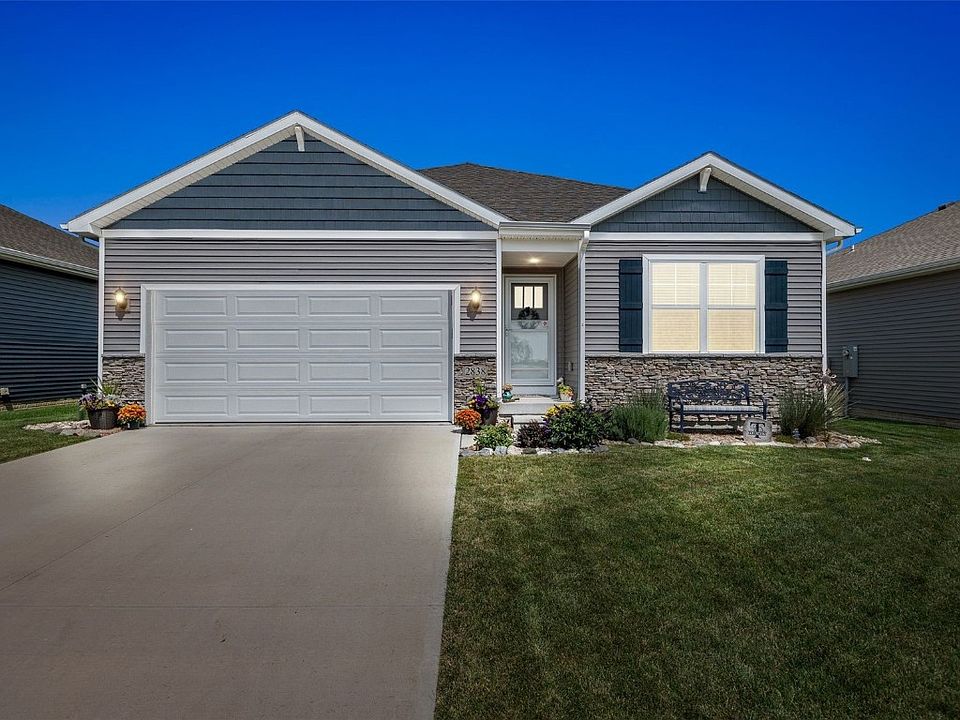 This open-concept ranch offers 4 bedrooms and 3 bathrooms in a thoughtfully designed layout. The spacious living room features a cozy fireplace and flows seamlessly into the Kitchen, complete with a walk-in pantry and a large island overlooking the dining area and living space. The Primary Suite includes a private bath with dual vanities and a generous walk-in closet. Two additional bedrooms and a full bath are tucked at the back of the home—perfect for family or guests. The lower level features a spacious family room along with an additional bedroom and bathroom. Outside, the fenced yard is beautifully landscaped and backs to a wooded area for added privacy