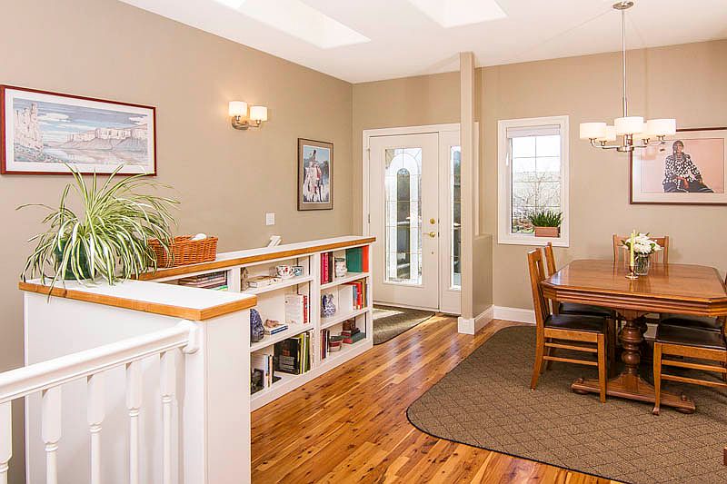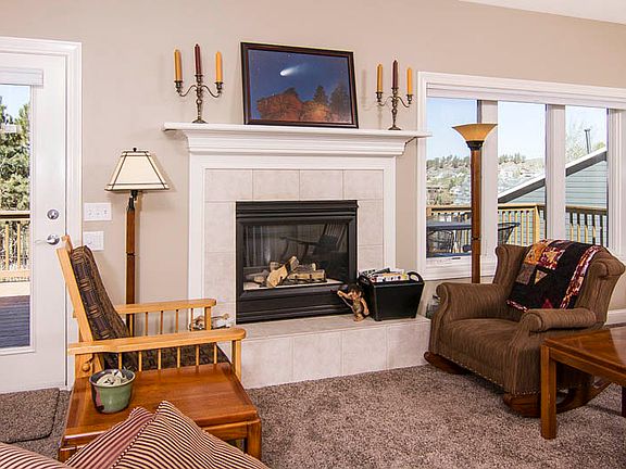 A stunning home updated throughout. Unique open floor plan on main level with vaulted ceilings. Kitchen has new cherry cabinets, quartz countertops, new SS appliances. Lower level has daylight family room, wet bar, french doors to walkout patio, additional laundry hkups, lots of storage including a small vault room. All bedrooms have double closets and lower level egress windows. Hot tub hookup. Fenced, raised bed garden. Mature trees and landscaping. Incredible views of golf course, mountains.