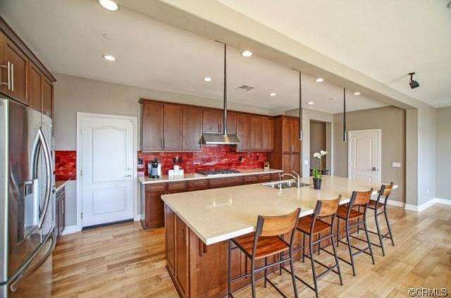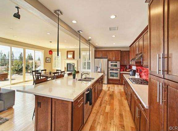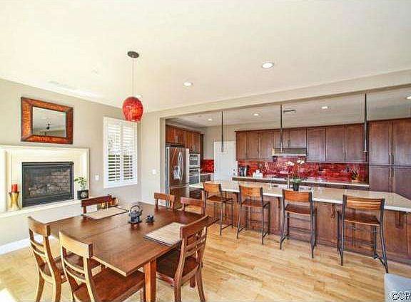 Call Cesi at 949.370.0819 to schedule a private tour. Welcome to the highly regarded neighborhood of Amber within the Master Planned Community of Blackstone where you can enjoy great amenities such as a recreation center, pools, tot lot, picnic areas & BBQs. Come enjoy the finer things in life that this spectacular home has to offer including over $70K in upgrades, amazing views and a popular floorplan. Take in the panoramic views of city lights, trees and mountains from the backyard and almost every room in the house! The chef's dream kitchen boasts a large island with bar seating that opens to the great room and dining room. Kitchen upgrades include brushed marble countertops, custom blown glass mosaic backsplash and stainless steel appliances. Enjoy great views while sitting in front of the elegant fireplace in the dining room. The great room features a dramatic ceiling fan and pre-wiring for speakers. Relax and enjoy views and fresh air in the backyard which features wood decking and a tranquil water feature. Master suite offers great views, a large walk-in closet and a highly upgraded bathroom. 3 secondary bedrooms + a loft on the upper level. Upgrades include wood flooring, designer paint, ceiling fans, wood shutters, marble accents and more!