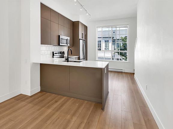 MOVE-IN READY! Welcome to Gardner by Mosaic Homes in the heart of West Abbotsford. This bright and modern 2 bedroom, 2 bathroom townhome offers 1,067 sqft of living space, making it the perfect starter home for a young family or first-time buyers. Step inside to an open-concept main floor with 10 ft ceilings, oversized windows, and a walk-out kitchen/living area that flows seamlessly to your private patio. The kitchen features quartz countertops, stainless steel appliances, and plenty of storage, ideal for both everyday living and entertaining. Upstairs, you’ll find two spacious bedrooms and two full bathrooms, providing comfort and privacy for family and guests. The home also includes tandem parking for 2 vehicles & is an amazing location close to everything! Unit has a East facing door.