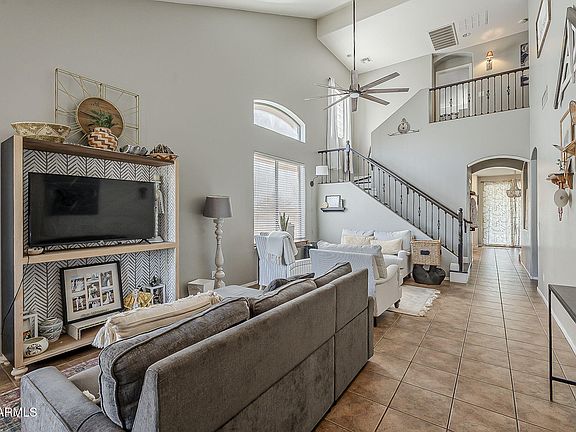 Spacious 2-Story Home with Ideal Location. This beautiful 2-story home offers plenty of room to spread out with 4 bedrooms, 2.5 bathrooms, and a versatile den. Designed with both comfort and functionality in mind, it features two spacious living areas and vaulted ceilings that fill the home with natural light. The open floorplan connects seamlessly to the upgraded kitchen, complete with a large island, quartz countertops, wine cooler, and gas stove—a perfect setup for entertaining or preparing meals with ease. With ample cabinet and counter space, this kitchen is both stylish and practical. Step outside to enjoy a large backyard with endless potential for gatherings, outdoor activities, or future upgrades. The community has plenty of parks and green spaces to enjoy as well. Perfectly located near everyday conveniences, this home sits close to the 202 and I-10 freeways, making it easy to reach Cardinals Stadium, Westgate, Costco, shopping, grocery stores, dining, hiking trails, and golf courses. This spacious and well-appointed property is not just a house it's a lifestyle upgrade in one of the Valley's most convenient locations.
