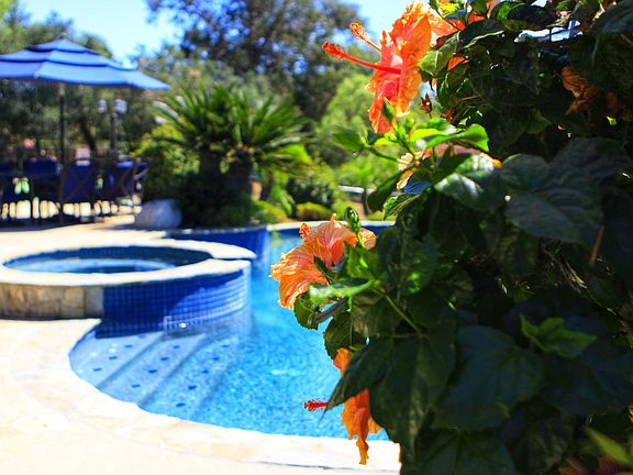 This is a serene and tranquil three bedroom/three bathroom, custom-built, 2500sf property complete with Gourmet Kitchen, Quartz Counters, Stainless Steel Appliances, Gas Stove, Dishwasher, Microwave, Reverse Osmosis Filtered Water, Storage Cabinets, Washer & Dryer, A/C with Nest control, Smart TV's, Outdoor gas BBQ, Solar Heated Pool, Spa, Private Parking, Outdoor Patio, Outdoor Furniture and Solar Panels.