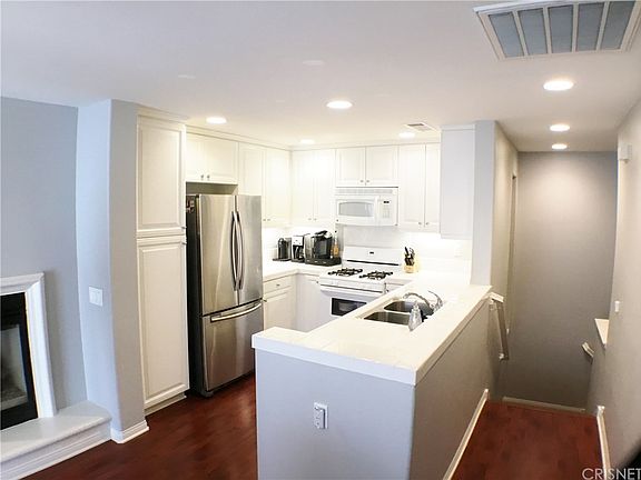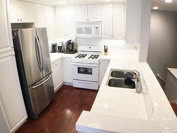 Great Opportunity for this Wonderful two bedroom, two bath Townhome in the highly sought after Mariposa Community! Open functional floorplan that features what is considered two master suites on opposite ends of the unit. This popular floorplan is highly desired and currently the only one for sale! Enter this move in ready unit that features a spacious living room with direct access to the balcony that features a storage closet and an area to set up your BBQ with chairs to enjoy those nice evenings. Laminate flooring throughout the living room, dining area and kitchen. Kitchen features white cabinets with tons of storage and beautiful white tile countertops! One of the master suites has a walk in closet and both master baths have his and hers sinks. Parking features direct access to a one car garage and one more additional covered parking spot right outside the unit. Mariposa has a wonderful resort like Pool and Spa area that is gated alongside a clubhouse. Other features to the pool and spa area are built in BBQ's and lounge chairs perfect for enjoying those beautiful summer days! There's also a kid's Tot Lot as well. HOA features ALL this and is one of the lowest HOA's in the entire Santa Clarita Valley! Additionally there is NO MELLO ROOS...WOW!! Property is located near award winning schools, a brand new shopping center that is set to open soon, shopping dinning and entertainment. This one won't last!!
