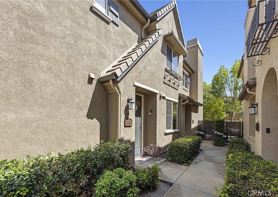 Welcome to 28385 Mirabelle Lane in the highly desirable Mariposa community of Saugus! This beautifully upgraded 2-bedroom, 2-bath townhome offers a stylish and comfortable living space with wood flooring throughout, tile in the bathrooms, and a neutral paint palette completed just three years ago. The upgraded kitchen features sleek LG stainless steel appliances, a stunning copper farmhouse sink, and custom cabinetry, flowing into a bright living area with a built-in entertainment center and ceiling fans for year-round comfort. Both bathrooms include copper sinks and tasteful finishes, and the secondary bedroom features a chic barn door. Indoor laundry adds convenience, while the private balcony is perfect for entertaining with a gas BBQ that stays with the home. Enjoy the charm of plantation shutters throughout and a direct-access garage, also includes a covered carport. Located in the resort-style Mariposa community with low HOA dues, residents enjoy a pool, spa, clubhouse, BBQ area, playgrounds, and scenic greenbelts all within minutes of top-rated schools, shopping, and dining. This move-in ready town-home checks every box for comfort, convenience, and style.