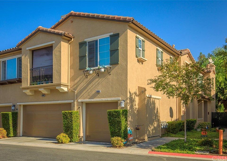 Welcome to the highly desirable and affordable Mariposa community! Situated in the hills of Saugus this impressive well taken care of 2BD 2BA townhouse will be in high demand. Located on a quiet inner street this private end unit has no neighbors on one side and is right next to the playground/park. Spacious open floor plan, double sided fireplace in living room/family room with direct access to the private patio that includes a casablanca fan. Dual master bedrooms with one one each side, walk-in closet and two full size bathrooms with tile flooring, dual sinks and tile countertops. The updated kitchen includes granite countertops with tile backsplash, stainless steel appliances, beautiful maple cabinets and hardwood floors. Nobody above or below, Freshly painted inside, plush carpet and an abundance of natural light make this home very attractive. Laundry room with extra storage, direct access garage with carport and private tile entryway. Exclusive community with LOW HOA's that includes fantastic amenities such as a gated resort style pool/spa, BBQ area, playground and a clubhouse. In close proximity to award winning schools, trendy Skyline Ranch Plaza and enjoy the trails, parks and paseos.