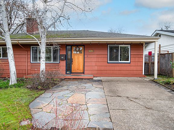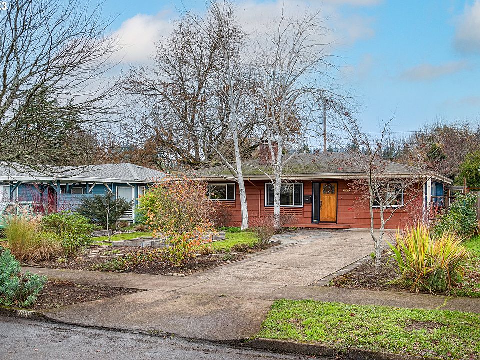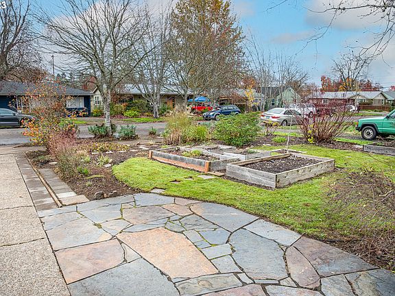 Delightful cottage in prime east Eugene location. Features hardwood floors throughout, spacious kitchen with newer stainless steel appliances, gas cooking, open layout. Nice separation of space with 2 bedrooms and bath on one side of house, 1 bedroom and bath on the other. Lovely covered back deck, landscaped, beautiful yard, back yard is completely fenced. Fig tree, blueberries, strawberries in front. Established perennial beds in landscaped front and back yards, a gardeners delight!.