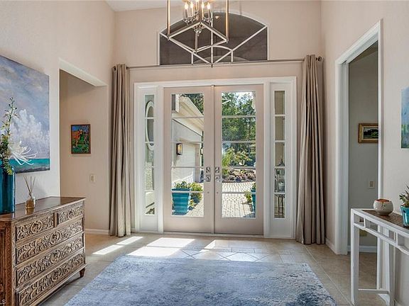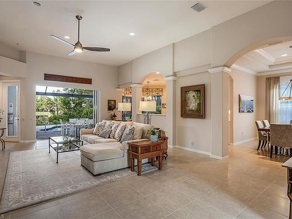 Meticulously maintained former Arthur Rutenberg Model featuring extensive upgrades throughout the home! 3+Den, 2 1/2 baths. New custom Cornerstone kitchen with soft close cabinetry, stainless appliances, center island, quartz countertops w/ glass tile backsplash, recessed lighting and plenty of storage, with a separate formal dining area w/ recessed lighting and tray ceilings, as well a kitchen nook area w/ beveled seamless glass overlooking the pool and lake beyond Great room featuring sliding doors w/ motorized shades to lanai, entertainment wall with fireplace and TV opening. Spacious new Cornerstone master suite, w/ His/her separate vanities, walk-in shower and free-standing soaking tub. Office offers new custom built-in cabinets and storage. The two secondary bedrooms feature a new share bath and pocket door Lanai features: Built-in wet bar, heated pool & spa w/ water feature, new super screen panorama cage, and lanai paver decking which was renovated in 2024. Other features: New roof in 2020, New Hurricane Windows and front double door, New custom kitchen, master bath, guest bath, and half bath renovated by Cornerstone, whole house water filtration system and large landscaped corner lot overlooking pond and golf course. Olde Cypress is a very active community with numerous amenities. Olde Cypress is a low-density gated community with 550 single family homes, located in N. Naples, the Social Membership allows residents to use the clubhouse facilities which include club activities, fine & casual dining, tennis, pickleball, swimming pool, fitness and meeting rooms. Residences of the community may enhance their privileges by upgrading to a Golf Membership or Associate Membership on the prestigious Pete Dye designed course. There is a new Clubhouse renovation taking place that will put Olde Cypress in a class of its own. Olde Cypress is located just off I-75, allowing easy access to Fort Myers airport, numerous restaurants, beaches and shopping.