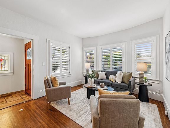 Saunter down this small fairytale street in Alameda’s coveted East End and you’ll come upon this artistic Craftsman bungalow: 2839 Washington Street. Full of Craftsman details and creative touches, it just says “you’re home.” A novel entry brings you to the light-filled living room, dining room with bay windows. The primary and guest bedrooms open onto their own lush greenery. The updated farmhouse kitchen says "come on in" with its off white Shaker style cabinets, stone countertops and new appliances That takes you to another rather big plus: an upper floor “great room" with an extra 515 square feet of space to create your own art room, media room or office. As for pluses ... and added income ... there's a fully oufited studio cottage with its own patio that previously rented for $1750 per month (ADU potential). And that's all set in its good-sized yard with loads of room for gardens, barbecues and friends around the firepit.