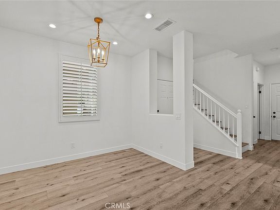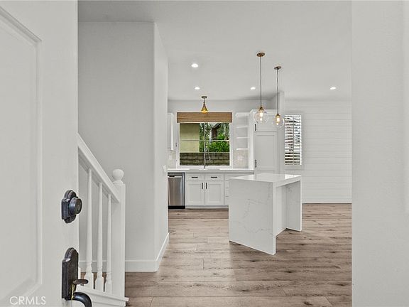 Impeccably Updated Home in the Mayfair Community of Northpark! Welcome to this beautifully renovated two-story home. Designed with both style and comfort in mind, this light-filled detached PUD offers a functional open layout with thoughtful upgrades throughout. Wide-plank oak-style flooring flows through the main living areas, complemented by curated brass lighting and custom finishes. The kitchen stands out with a quartz waterfall island, polished Herringbone backsplash, white shaker cabinetry, matte black hardware, and stainless steel appliances—perfect for home cooks and entertainers alike. The living room features a modern gas fireplace, custom-built-in shelving, and wood shiplap walls that bring warmth and character to the space. Natural light pours in through large windows and sliding doors, creating a bright and inviting atmosphere throughout the home. Upstairs, you'll find a convenient laundry nook with encaustic-style tile and open shelving, along with three spacious bedrooms. The primary suite includes a walk-in closet and a beautifully remodeled bathroom with marble surfaces, porcelain tile, a soaking tub, a glass-enclosed shower, and a double vanity with brass-accented mirrors. Step outside to a private, low-maintenance backyard complete with a stone patio, turf lawn, and charming string lights—ideal for dining al fresco or relaxing with friends and family. Additional features include recessed lighting, wood shutters, freshly painted interiors, an attached garage, and smart storage solutions. All of this, just minutes from top-rated schools, neighborhood parks, and Valencia’s best dining and shopping. This move-in-ready home offers timeless design, comfort, and an unbeatable Valencia location—perfect for today’s lifestyle.