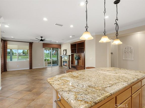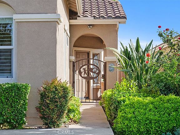 STUNNING Views of the Golf Course and LAKE on the GORGEOUS upgraded HOME in the 55+ Gate Guarded Community of the OASIS! PAID OFF SOLAR IN ESCROW .One of a kind location with Fabulous curb appeal and a Custom Gated Courtyard Entry. GREAT PRICE IMPROVEMENT! This 2 Bedroom plus office plan will not disappoint. Custom Tile through out with designer carpet in two bedrooms. Custom Fans and 8" Crown Molding. Combination of Plantation Shutters and Custom Window coverings. Gourmet Kitchen featuring Granite Counters and Granite extended Island with built in Wine Cooler! Full Custom Stone Backsplash, newer Stainless Appliances , Custom Drop down Lighting and Pull out pots & pans drawers! Kitchen opens to expansive Great Room with built in entertainment area, Custom Fireplace with surround Mantle and Granite facing. Elegant Primary Suite with Coffered Ceilings/ Plantation Shutters and VIEWS from South facing windows. Primary bath features Granite Counters, Custom Lighting & Plumbing fixtures, elongated SPA Tub ( Granite). Custom Granite walk in shower and super size closet with custom organizers. Guest Bedroom & full bath in front of home completely separate from Primary. Additional features include: Newer HVAC units, newer Water Heater, newer Vinyl Fencing and a Quiet Cool Attic Fan. Outstanding rear yard with Custom Stamped Concrete Patio, Full length Alumawood Patio Cover w/ Lighting and pull down privacy shades. Enjoy the AMAZING Golf Course and LAKE Views! Low maintenance professional landscape and fountain. Fully finished ( IMMACULATE) Garage with Golf Cart parking space and custom built in cabintry. HOA covers front yard maintenance and trash service. Minutes from NEW Shopping, Medical, Restaurants GOLF and more. Short drive to Famous Temecula Valley Wine Country. VIEW the video for optimal pictures!