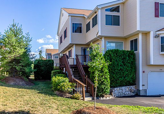 Better than new town home in Village of the Americas. This young resale features hardwood and tile floors throughout! Spacious living room with gas fireplace.Cabinet packed kitchen with stainless steel appliances and granite counter tops. Upstairs, master suite features cathedral ceilings, fireplace & terrific bath w/ whirlpool tub, shower w/ glass door. A sitting room completes the suite. Large 2nd bedroom with cathedral ceilings & private bath. 3rd floor loft perfect for office area. Unfinished basement for great storage or future expansion. Large two car tandem garage. Private deck for your enjoyment. Great commuter location, close to highways, commuter rail to Boston. Near Shopping, Restaurants and Theaters. All the bells and whistles that you will have to pay extra with New Construction! Please set up your private showing today.