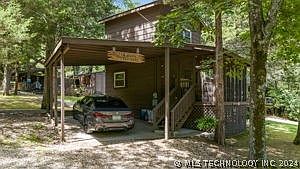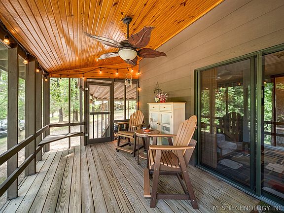Nestled in a wooded area near Locust Grove, Oklahoma is a HIDDEN GEM called CEDAR CREST COUNTRY CLUB. This 2 bedroom with 1.5 bath cabin features wood floors and paneled ceilings. The original log cabin has been renovated and is now the kitchen with concrete countertops and custom cedar cabinetry. The cellar area is where you will find the washer/dryer room with a half bath. A covered and screened in front deck area is a place to enjoy that cup of coffee and watch the wildlife go by. The backside of the property features a fire pit area with a covered outdoor living/kitchen space that is perfect for entertaining! A storage building for your golf cart, a fish cleaning station and canoes on racks ready for you to explore Spring Creek. This place is selling mostly FURNISHED! Cedar Crest cabins were once modest and rustic back in the William Skelly days when it was purchased as a hunting and fishing camp. The cabins are along Spring Creek/Cedar Lake area and along the hillside. Cedar Crest Country Club is a gated community and offers swimming, canoeing, fishing, hiking trails, shooting range, a community building (wigwam) and even an old golf course to practice your swing. A weekend retreat that is less than an hour away from the Tulsa Metro. This addition rarely has anything on the market, so won't last long!