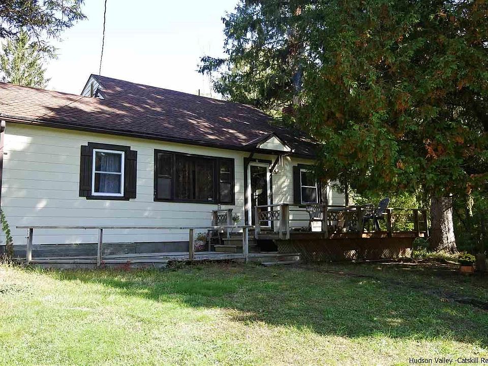 At the edge of the tranquil hamlet of Stone Ridge, nestled in the Vly foothills, there lies a private and secluded parcel of 26.60 acres, with meadows and woods, ridges of stone, a pond with fish & lilies, ducks and turtles, a stream tumbling through the woods, and stone walls of yore meandering through the woods. Centered on the parcel is a diamond in the rough. a multi-generational family home awaiting its next incarnation. Next to the home is a two car garage with large workshop area, and a loft that could be finished to a fine studio space. The driveway opens up on the meadow, bringing you past the old barn and up the gentle rise to the house. Welcome to quiet country life, just minutes from Stone Ridge and High Falls, with their shops and galleries and restaurants, just 9 miles from uptown Kingston, and easy access to thruway. House is in need of significant updating, and is being offered "as-is".