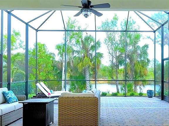 Imagine your new Florida adventure living in this Vicenzo Model Home in Aria, a Neal Signature Community located in North Venice, FLORIDA. This georgeous waterview 3-bedroom, 2 bath, with an extra deep 3-car garage, with 2,412 sq. ft. of open living space in an exclusive, luxury gated community. Aria is close to area beaches, numerous restaurants, shopping and entertainment. You will absolutely love this custom home newly built in 2022 by the present owners. You will feel the charm and warmth the moment you walk in. The appeal comes from all of the upgrades in the tile floors, walls, high ceilings and upgraded cabinetry in this signature home upgraded levels above typical builder homes. The home features a large great room, separate den, formal dining room, and a gourmet kitchen with a gas cooktop stove, spacious island, corner pantry, and ample storage. The master suite is a true retreat with very large dual walk-in closets, a large garden tub, huge walk-in shower, and dual vanities. Two additional bedrooms share a full bath. The large office commands a great view over the entire living area. YOU WILL LOVE the waterfront view from the large lanai and cage, added by the owners, to enjoy the private waterfront backyard. Additional features include a gas water heater, an extra deep 3-car garage. The Italian-inspired gated community has resort-style amenities, while the custom-built home provides open, elegant living spaces. The impressive kitchen includes a gas cooktop, a spacious island, a corner pantry, and ample storage. Spacious master suite: The master bedroom has dual walk-in closets, a garden tub, a huge walk-in shower, and dual vanities. Outdoor living: A large screened lanai overlooks a private waterfront view. The space is perfect for relaxing or hosting guests. Indulge in resort-style amenities Aria's community amenities are designed to be a full, active Florida lifestyle. Resort-style pool: Residents can soak up the sun by the community's resort-style swimming pool and spa. Fitness center: Stay active in the well-equipped 24/7 fitness center. Active clubhouse: The elegant clubhouse is the community's hub for socializing, featuring a social room, catering kitchen, and event lawn. Fire pit: A cozy fire pit makes a perfect place to relax and mingle on cooler evenings. Local attractions: You are just minutes away from pristine Gulf Coast beaches, including Nokomis Beach, Caspersen Beach, and Venice Beach. Dining and shopping: Downtown Venice is a short drive away, giving you upscale dining, boutique shops, and a vibrant atmosphere. Arts and entertainment: The Venice Performing Arts Center and other local venues features a diverse calendar of live music, theater, and cultural events. Convenient travel: With I-75 less than a mile away, trips to Tampa, St. Petersburg, and Fort Myers are a breeze. Several airports are also within a quick drive. Nature and recreation: Beyond the community's walking trails, nearby options like Oscar Scherer State Park and the Legacy Trail are perfect for hiking, biking, and enjoying the outdoors.