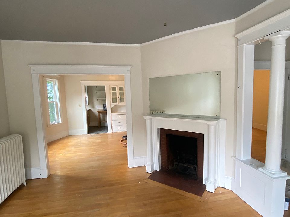 Beautiful spacious historic downstairs 1 bedroom apartment available Sept 7th! Beautiful original hardwood floors, fireplace, spacious dinning room with original built ins. Heat and Hot water included, tenant pays electric/internet. Plowing, trash and sewer included 1 off street parking space First, Last and security deposit due at signing Owners pay heat, hot water, sewer, plowing , and trash. Tenant pays electric/internet First last and security deposit due at signing. No pets, cats negotiable with pet fee. Please fill out prescreening for showings. 3x rent needed for monthly income to qualify